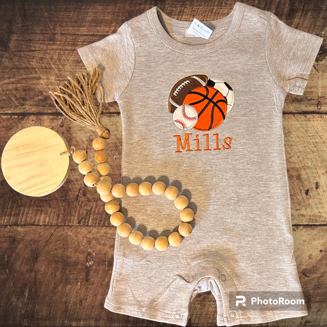 This 100% cotton Baby Boys Sports Romper is the perfect addition to any baby boy’s wardrobe! It is personalized with sports applique and 1 name. It’s the perfect accessory for a little man on the move! Don’t miss the chance to gift this amazing gift!
