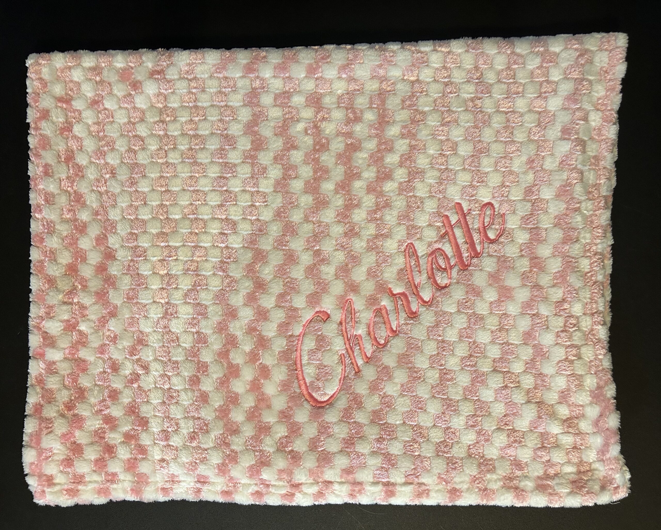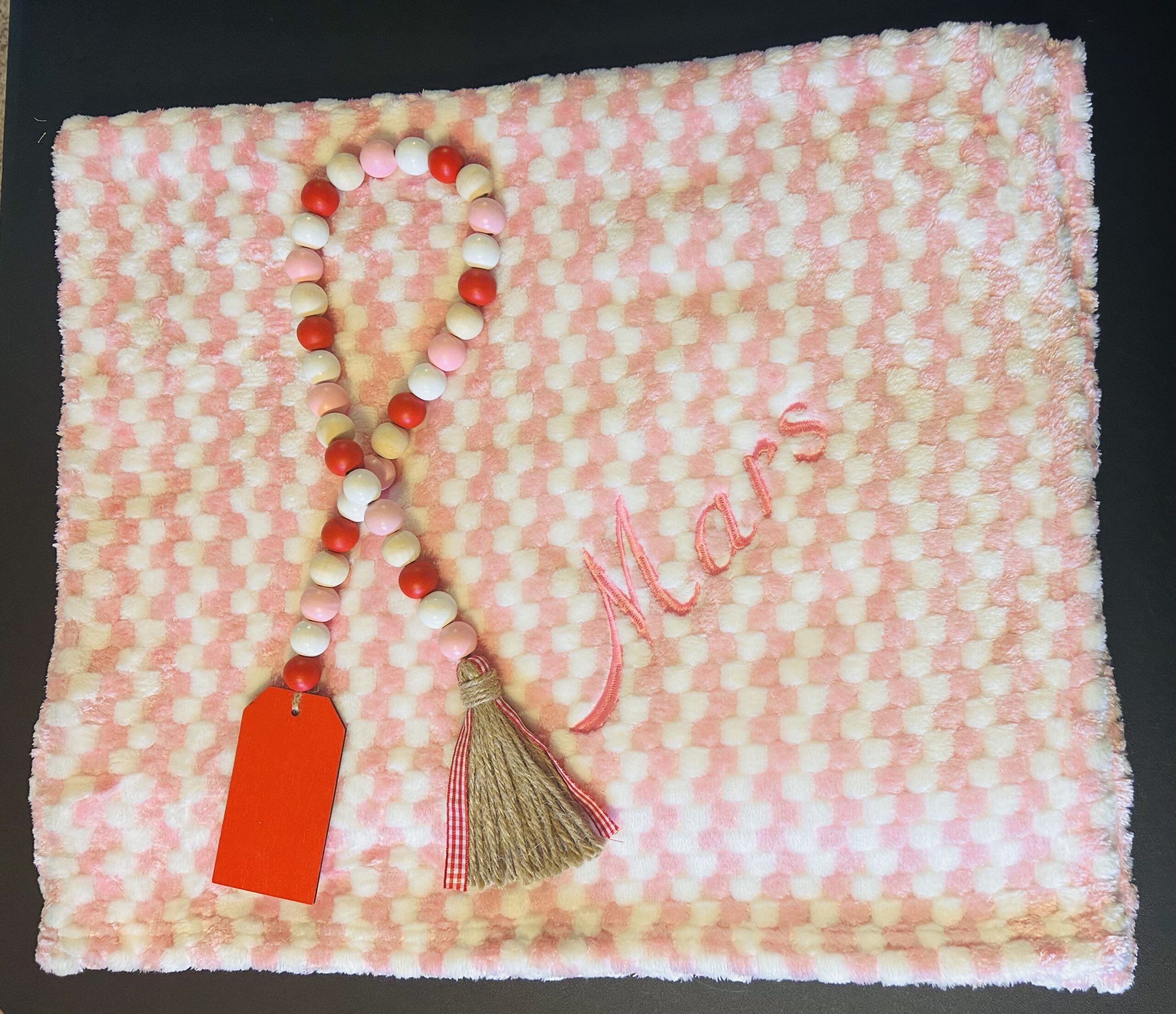 This super soft embroidered baby blanket is the perfect gift for a precious baby boy or girl! It measures 30×40 inches and is 100% polyester. It can be embroidered with 3 initials or a name in the embroidery color of your choice! Blanket colors include pink and white, pink, blue, green, yellow, and lavender. Please be sure to add the name or number of the font or initials you choose. Please provide a name for name and initials. Please Please Please double check spelling!