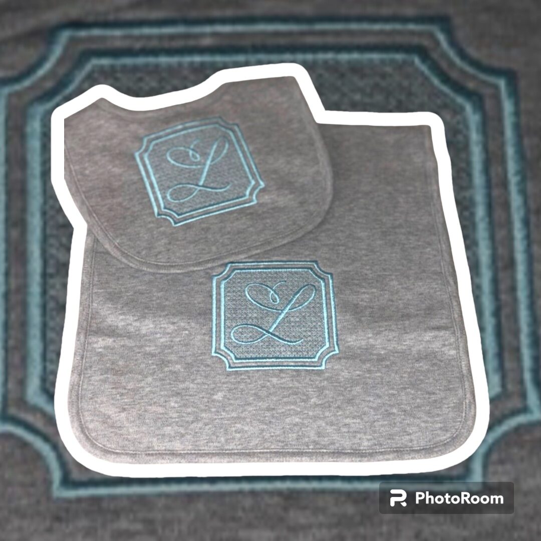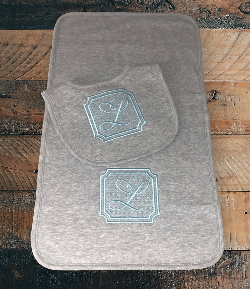 Embroidered Bib and Burp Cloth Set